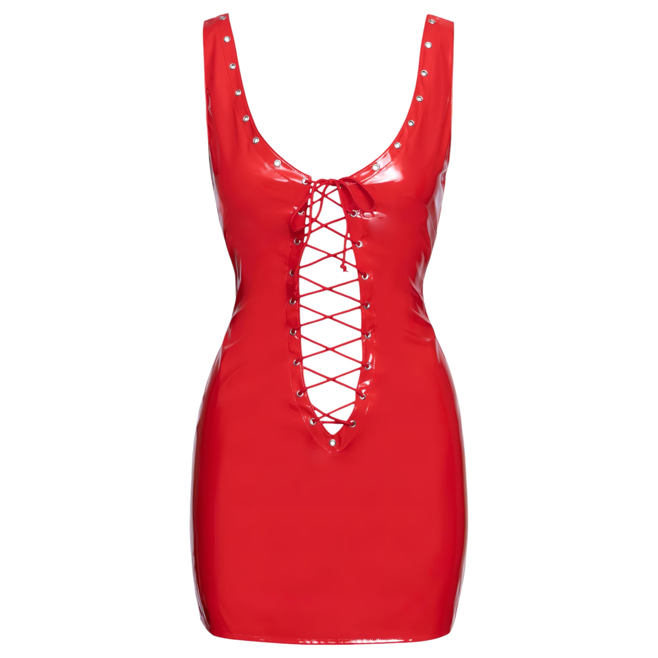 Merész és merész extra mini ruha fényes lakkbevonattal – tökéletes kalandos bulikhoz vagy domináns játékélményhez.