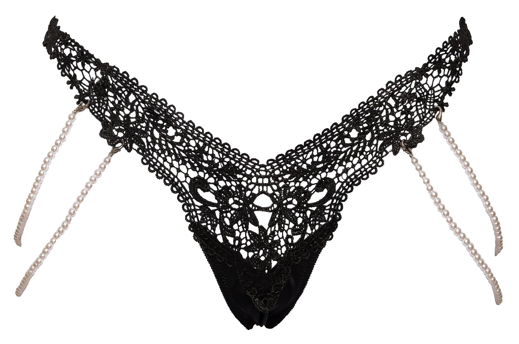 Luxus minőségű hímzett csipke tanga kivehető gyöngyláncokkal a Cottellitől – A kísértés új dimenziója!