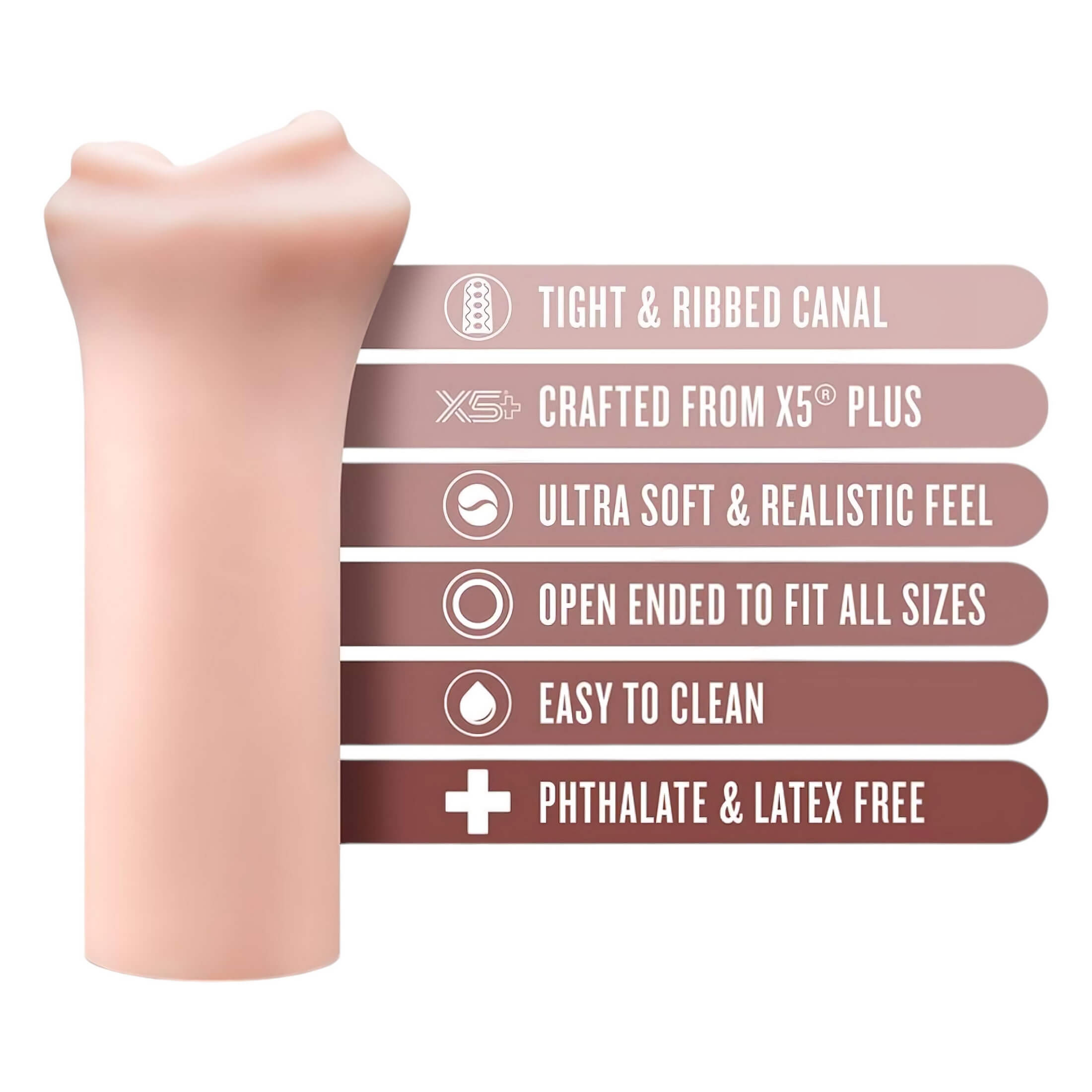 Az ultrapuha X5® Plus szilikonból készült Enlust Candi valósághű formát és érzéki részleteket kínál, amelyek olyan élményt nyújtanak, mintha valódi ajkak és nyelv kényeztetné a férfiasságodat. A **feszes, rugalmas élvezeti csatorna** és a mellékelt mesterséges intelligencia által generált képek együttesen biztosítják a maximális izgalmat.**