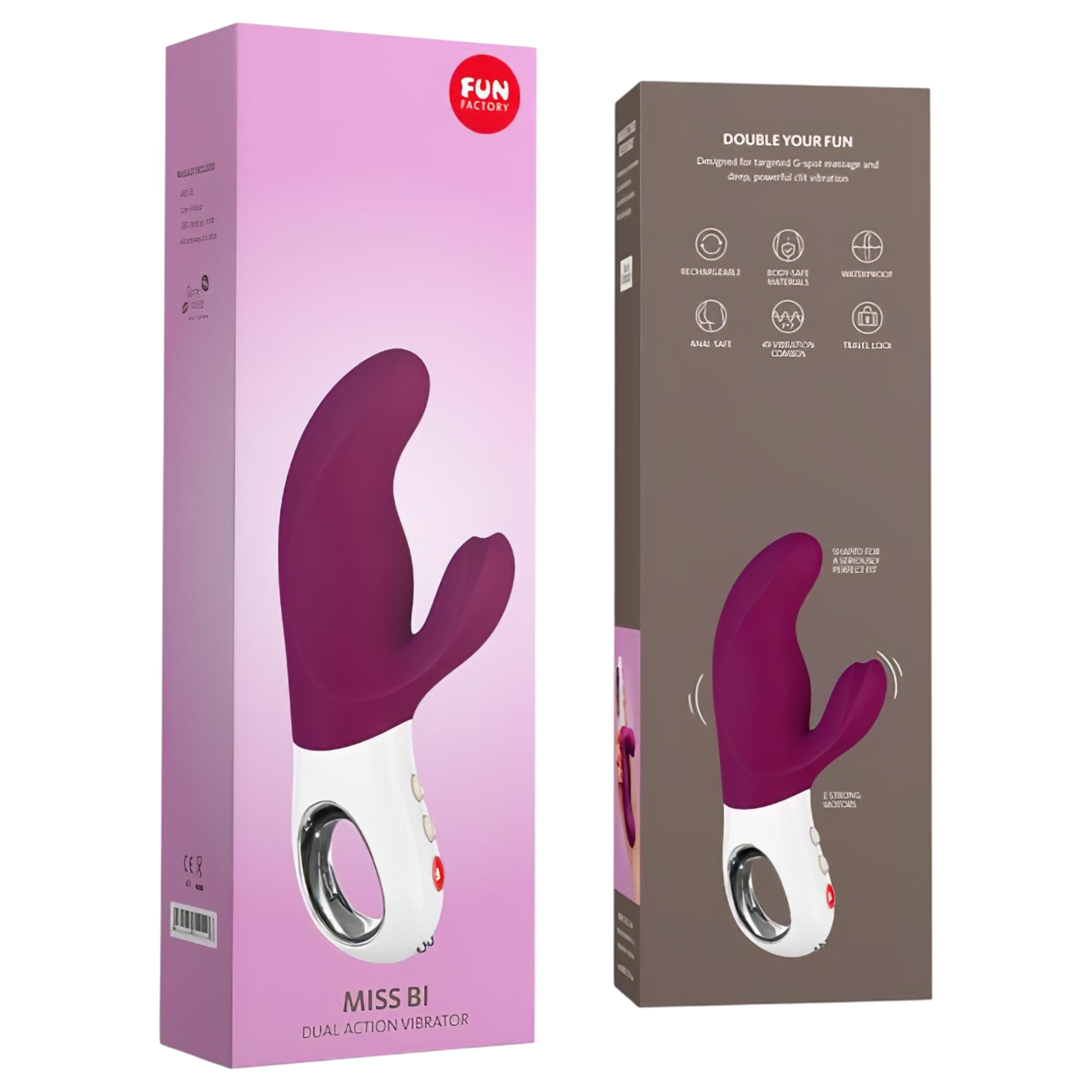 A Fun Factory Miss Bi – G-pont vibrátor (fekete) egy prémium nyúlvibrátor, amelyet a G-pont és a csikló egyidejű stimulálására terveztek. Rövidebb, ívelt tengelye kifejezetten a G-pontra fókuszál, míg a rugalmas kar gyengéden körülöleli a csiklót. A kettős motorok mély, morajló, intenzív rezgéseket biztosítanak, a kialakítás pedig “ahol számít”, hogy kivételesen kielégítő teltséget biztosítson a kisebb méret ellenére. Újratölthető, vízálló, csendes és diszkrét – ideális választás azok számára, akik prémium élményre vágynak.