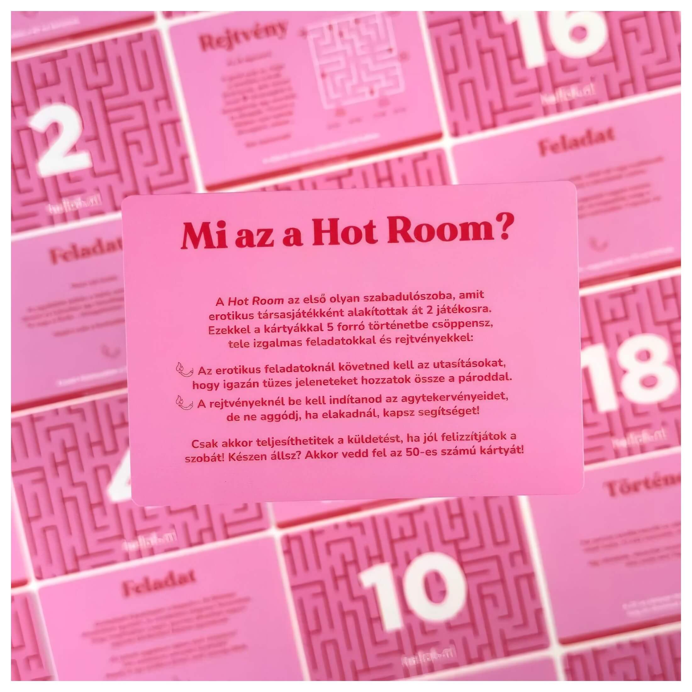 A Forró szoba – Erotikus szabadulószoba pároknak új szintre emeli az esték hangulatát. A klasszikus szabadulószobák izgalmát érzéki kihívásokkal ötvözi, szórakozást kínál, miközben elmélyíti az intimitást és a harmóniát köztetek. A közös gondolkodás, a csapatmunka és a feszültségépítés garantáltan közelebb hoz titeket egymáshoz, miközben a hangulat egyre forróbbá válik. Tökéletes választás egy igazán különleges közös élményhez.