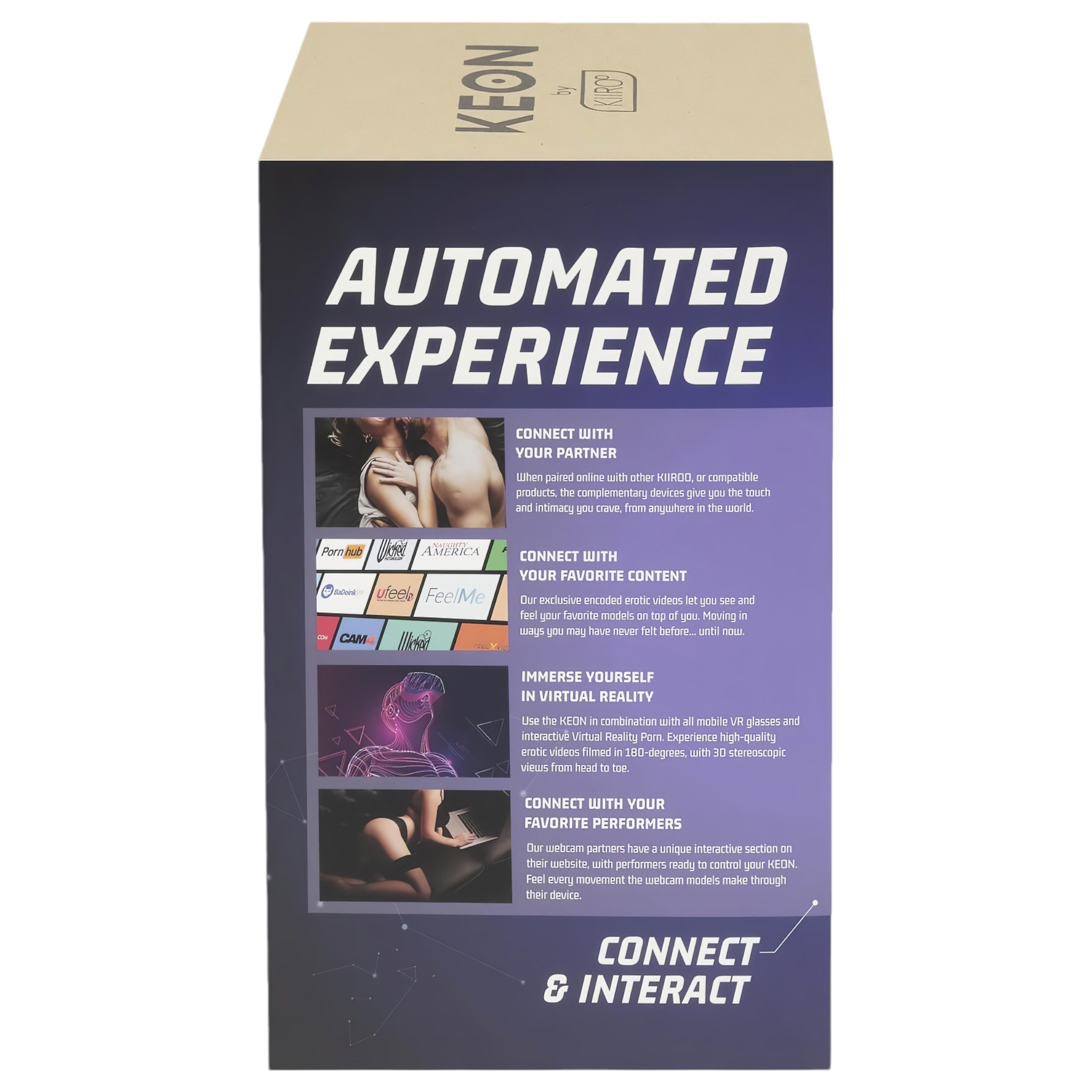 • Élvezze a valódi VR szexélményt – szinkronizáljon online videókkal egy magával ragadó orgazmusért, ahol a Kiiroo Keon utánozza kedvenc videósztárja mozgását, így pornósztárnak érzi magát!