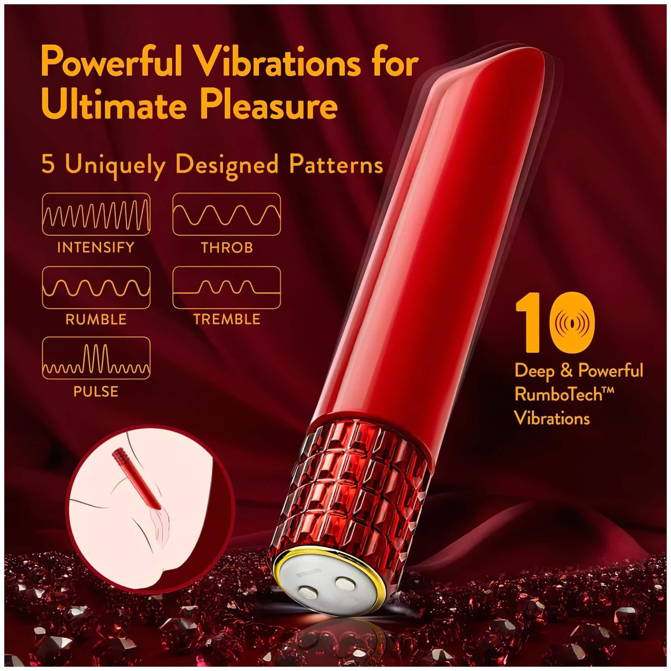Az Oh My Gem Desire egy elegáns és kifinomult vibrátor, melynek “koronáját” rubinkövek díszítik, a drágakövek időtlen báját idézve.