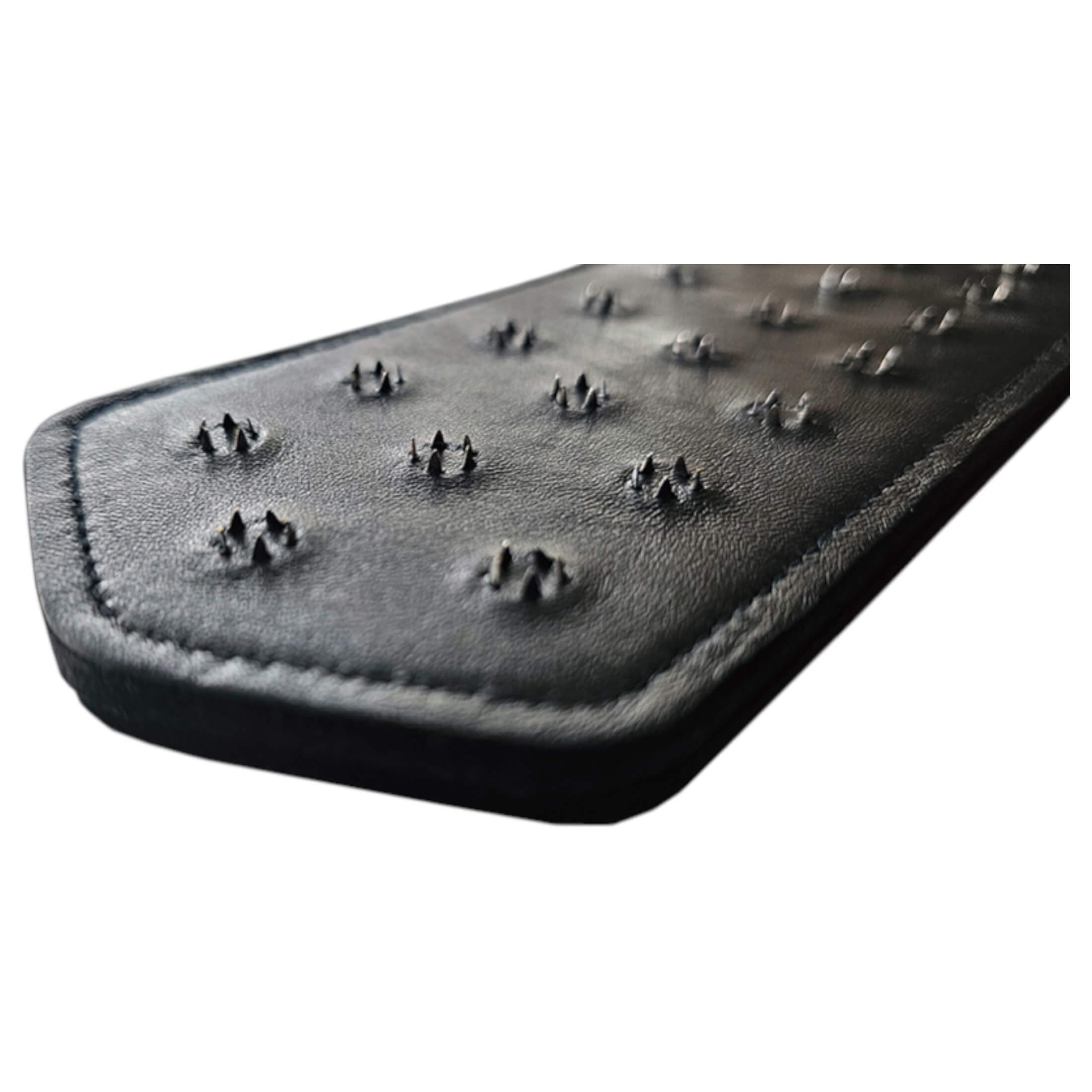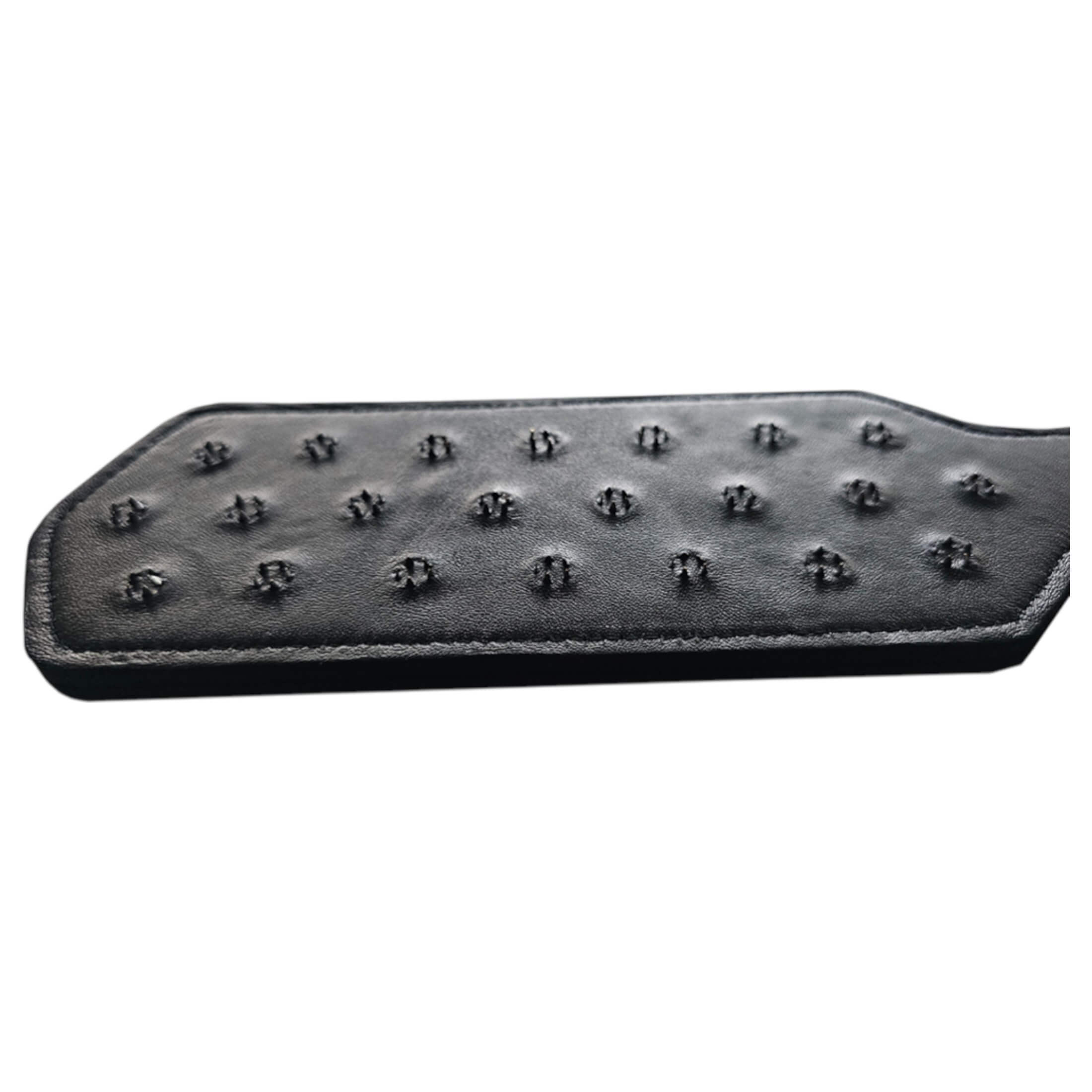 Ez a Rouge valódi bőr szegecses ütő (fekete) a BDSM határait feszegető játékosok kedvence – büntetés és élvezet egyszerre, brutálisan stílusos!