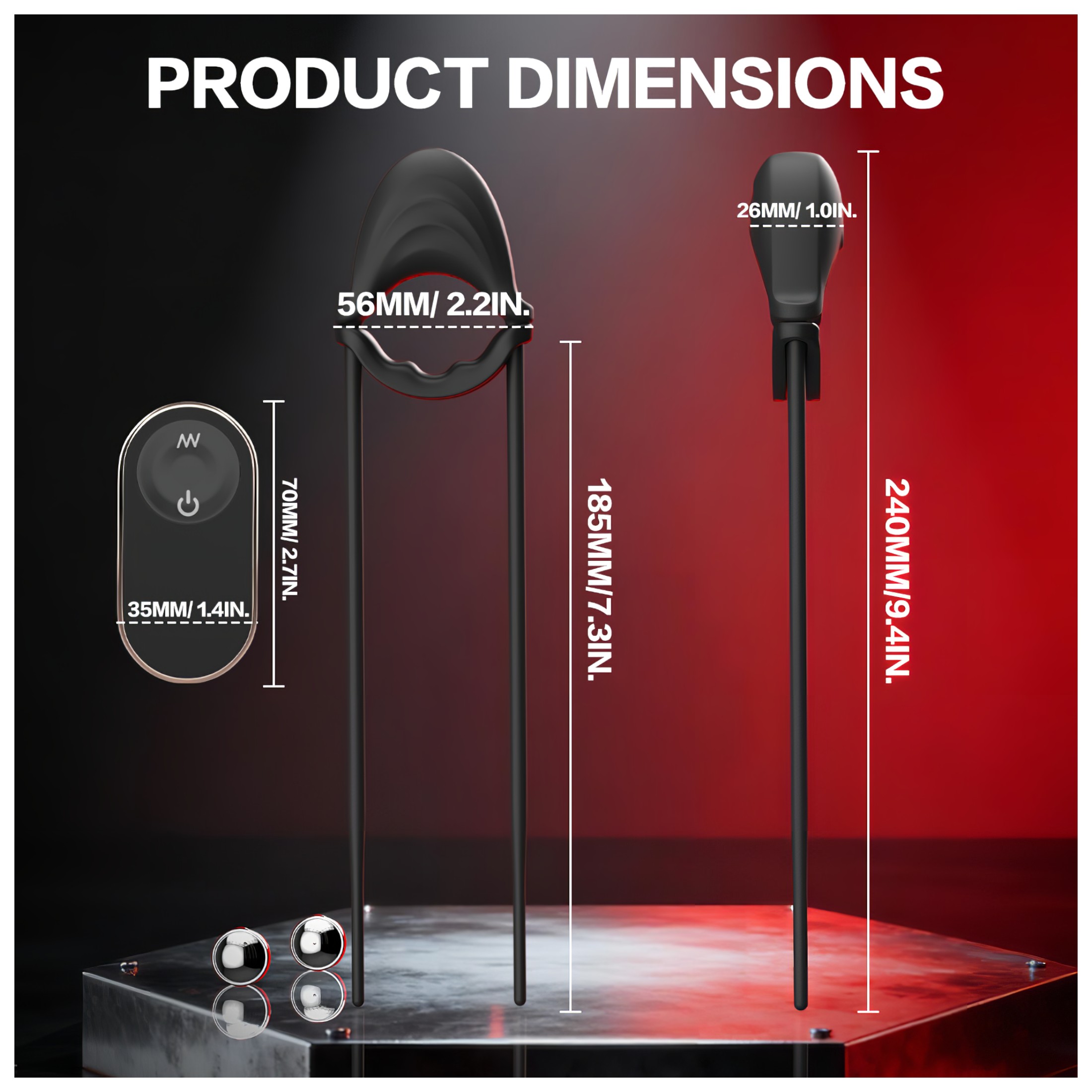 A távirányítón két gomb található: az egyik a rezgési minták váltásához, a másik a sebesség megváltoztatásához. A hatótávolsága elegendő ahhoz, hogy partnere szabadon irányíthassa a játékot.