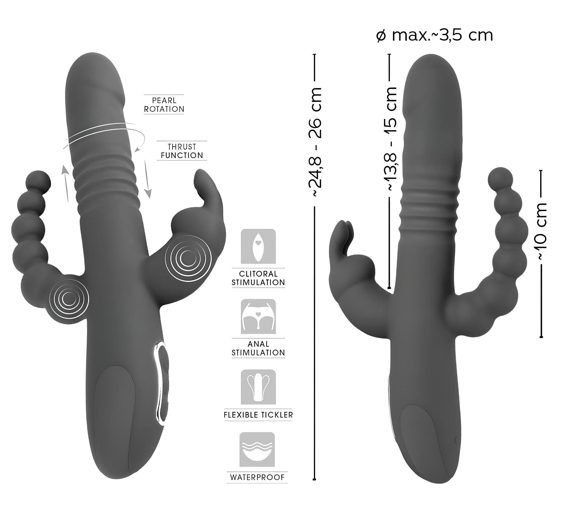 SMILE Triple – akkus, tripla karos, forgó-lökő vibrátor (lila)